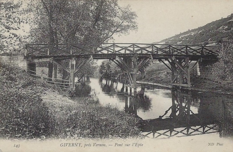 Les vues de ponts ont été l’un des thèmes favoris des impressionnistes tout comme des photographes du début du XXe siècle. La hauteur de celui dépeint par Guy Rose, sa légère courbe, sa construction en bois permettent d’affirmer qu’il s’agit de celui de Manitaux, que l’on voit sur cette carte postale ancienne :