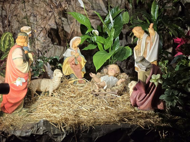 J’ai été touchée par le soin minutieux avec lequel cette crèche a été installée. C’est à cette période de l’année qu’on peut voir, complètes, ces représentations en trois dimensions de la Nativité dans les églises. Comme en peinture, le sujet est fourni avec précision mais donne lieu à d’innombrables variations, et j’ai aimé que celle-ci soit si bien fleurie.