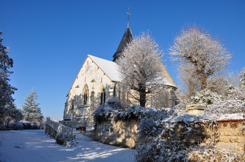 La rue Claude-Monet n’a pas été déneigée. Voilà l’église Sainte-Radegonde, si jolie dans cette belle lumière.