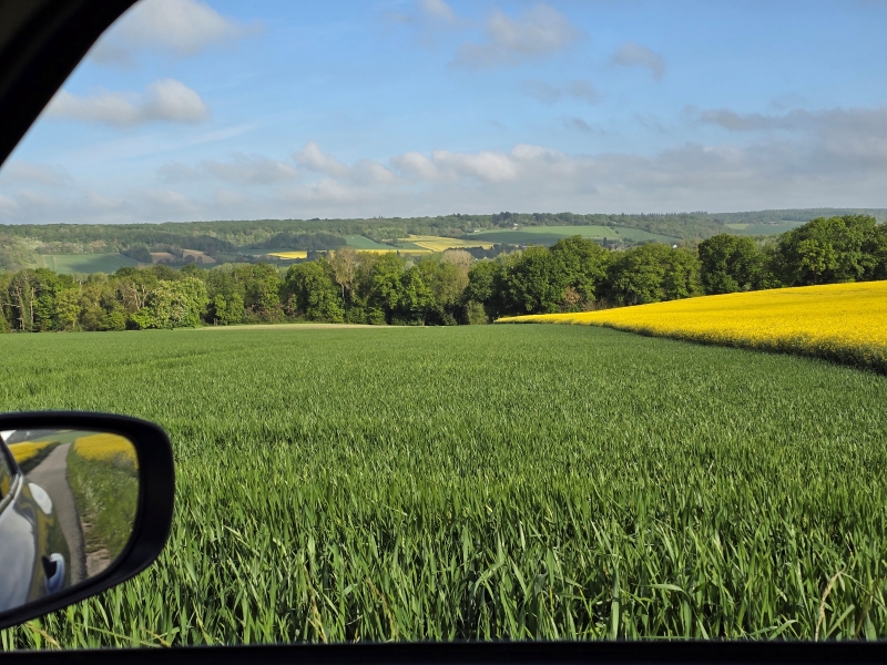 Par temps couvert, les contrastes se font moins forts, l’herbe pend un ton vert plus doux. Le vent s’est levé, les reflets ont disparu.