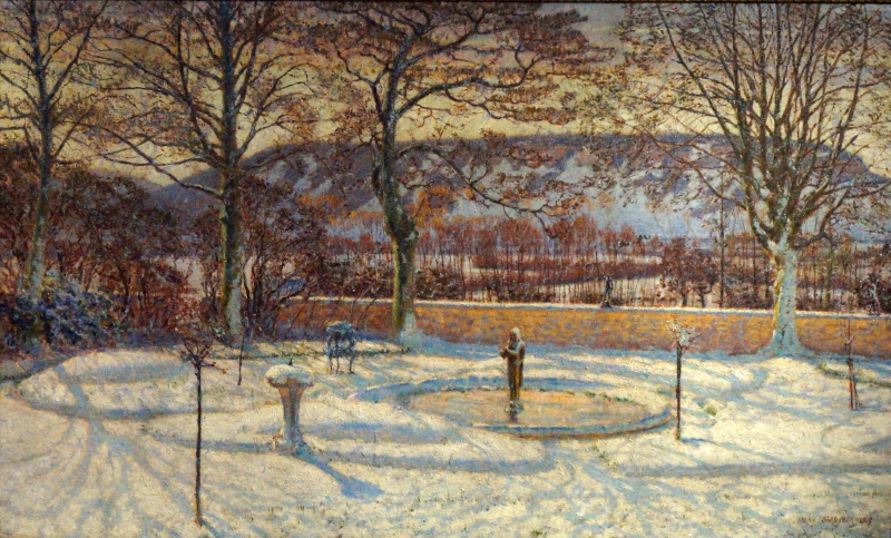 Voici l’un des chefs-d’oeuvre de Bruce, peint à peu près à la même époque que Pluie à Giverny pendant son séjour dans le village en 1887. Le tableau est réputé appartenir à l’Art Gallery of Ontario, mais je ne le trouve pas dans les collections. A-t-il été déplacé, ou cédé ?